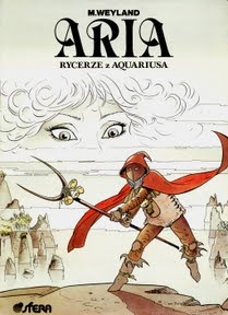Stralabas, dziwny mężczyzna o twarzy ukrytej pod maską, chodzi od wioski do wioski i opowiada o cudownym jeziorze, którego wody dają siłę zmęczonym i chorym, a także odmładzają starców. Nie inaczej dzieje się w wiosce, w której spotyka go Aria. Już rankiem następnego dnia nad jezioro wyrusza "pielgrzymka" ludzi, którzy chcą wyzdrowieć lub odmłodnieć. Aria, zaciekawiona, podąża ich śladem. Podczas kąpieli w jeziorze wszyscy ludzie zostają porwani przez silny prąd. Nasza bohaterka decyduje się podążyć na tajemniczą wyspę pośrodku jeziora, aby sprawdzić, czy ktoś przeżył. Nie płynie jednak wpław, lecz bierze małą łódź. Podczas podróży, już niedaleko wyspy, Aria odkrywa uczepionego skały mężczyznę imieniem Uthar. Bierze go na pokład, a wtedy okazuje się, że jego nogi, które były zanurzone w wodach jeziora, pokryły się dziwnym pancerzem. Obydwoje docierają na wyspę, gdzie odkrywają armię stworów pokrytych skorupami. Tylko jeden człowiek o imieniu Glore nie został całkowicie przemieniony w opancerzone monstrum przez wody jeziora. Jego głowa, a tym samym umysł, pozostały normalne. Inni mężczyźni zaś, którzy mieli mniej szczęścia niż on, stali się jego wiernymi jak psy, walecznymi rycerzami z Aquariusa. Glore bierze w niewolę Arię i Uthara. Pragnie, aby dzielna amazonka została u jego boku. Jednak udaje się jej zbiec i powrócić z kilkoma ocalałymi do cywilizacji. źródło opisu: http://www.kazet.bial.pl/2003_01/aria_albumy.html