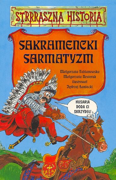 Husarska szarża historii! Książka "Sakramencki sarmatyzm" opowie wam o szalonej polskiej szlachcie i jej złotej wolności. Kiedy zobaczycie, co wyczyniano w XVII wieku, będziecie żałować, że nie urodziliście się w siodle i z szablą w dłoni! Ale i tak dowiecie się, jak umiano jeść i pić, jak się bić i jak bujnie żyć. Razem z Sarmatami będziecie: - wznosić toasty butem pana wojewody, - umartwiać się na potęgę, - przyrządzać kapłona we flaszy, - zrywać sejmy, - prać pohańca. Ta książka uzbroi was do walki ze szkolną nudą i pokaże, jak bronić wolności swoich myśli! Nie wie mama, nie wie tata, jaki fajny był Sarmata!