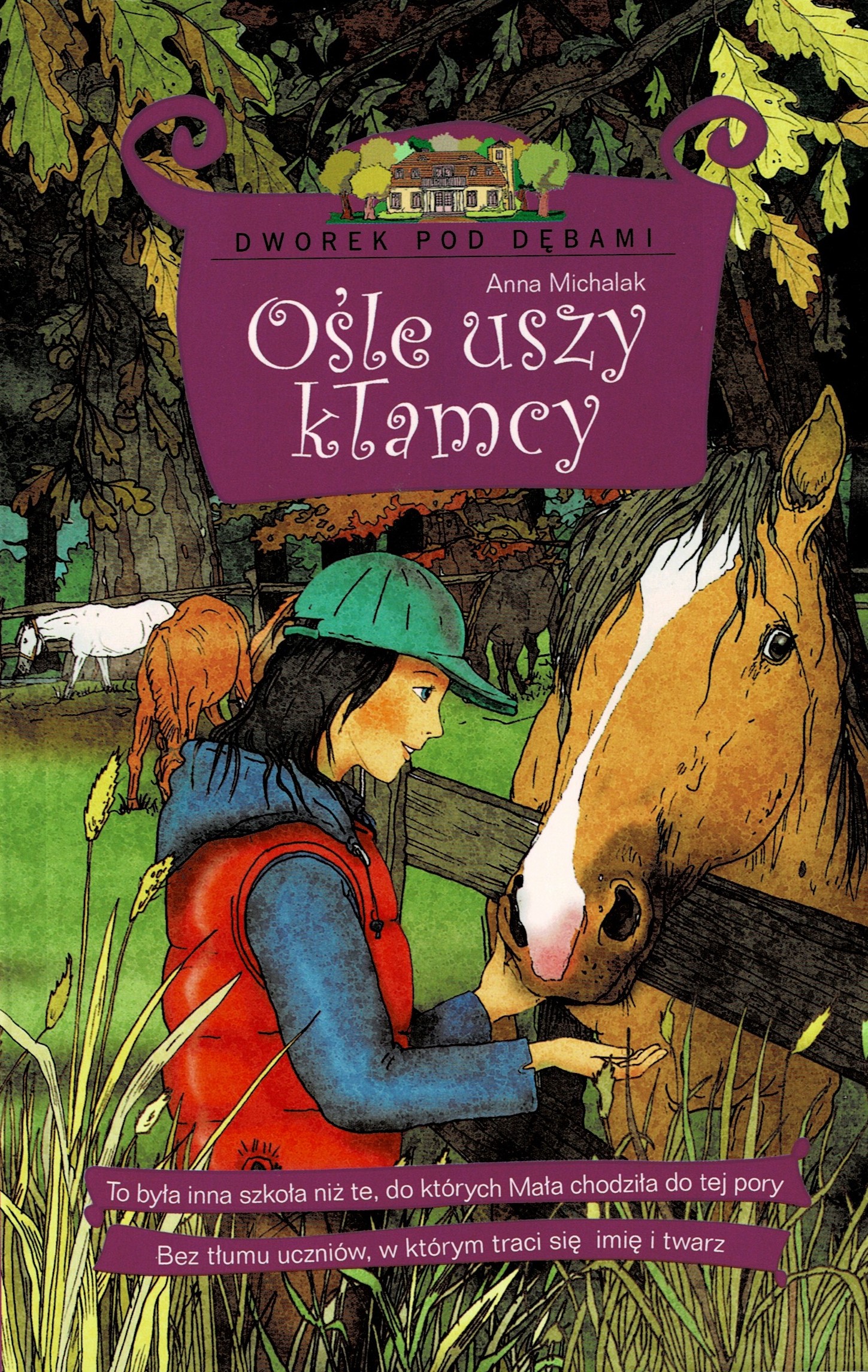 Dworek pod dębami 2 Wszystko byłoby inne, gdyby nie dorośli i ich wynalazki w postaci szkoły, sprzątania i tysiąca zupełnie niepotrzebnych zajęć. We wrześniu rozpoczyna się szkoła, która mieści się w pobliskiej wsi, Kamionce. Mała znajduje tam przyjaciółkę nareszcie ktoś na dwóch nogach i w jej wieku! Dla tej przyjaźni warto poświęcić wiele... Kiedy nieopatrznie wypowiedziane życzenie się spełnia, Mała dowiaduje się, że czasem trzeba z czegoś zrezygnować, co to jest odpowiedzialność i jak działa magiczna pozytywka.Czy Mała odzyska dorosłych, zanim na zawsze odjadą pociągiem-widmema I co można znaleźć na dnie lustra?
