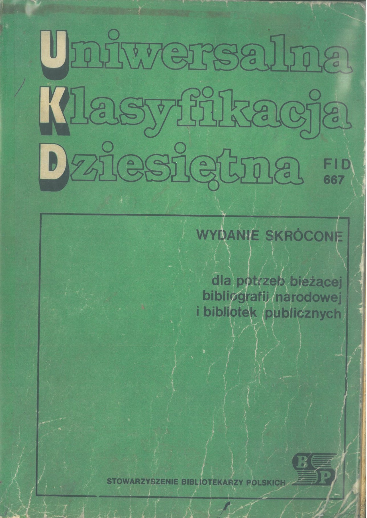 Uniwersalna klasyfikacja dziesiętna FID 667 / opracowali Jadwiga Czarnecka, Henryk Sawoniak. - Wydanie skrócone dla potrzeb bieżącej bibliografii narodowej i bibliotek publicznych. - Warszawa : Wydawnictwo SBP, 1988. - 217 stron ; 24 cm.
