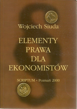 Elementy prawa dla ekonomistów / Wojciech Siuda. - Wyd. 15, stan prawny na dzień 1.6.2000 r. - Poznań : Scriptum, 2000. - 294 s. ; 24 cm.