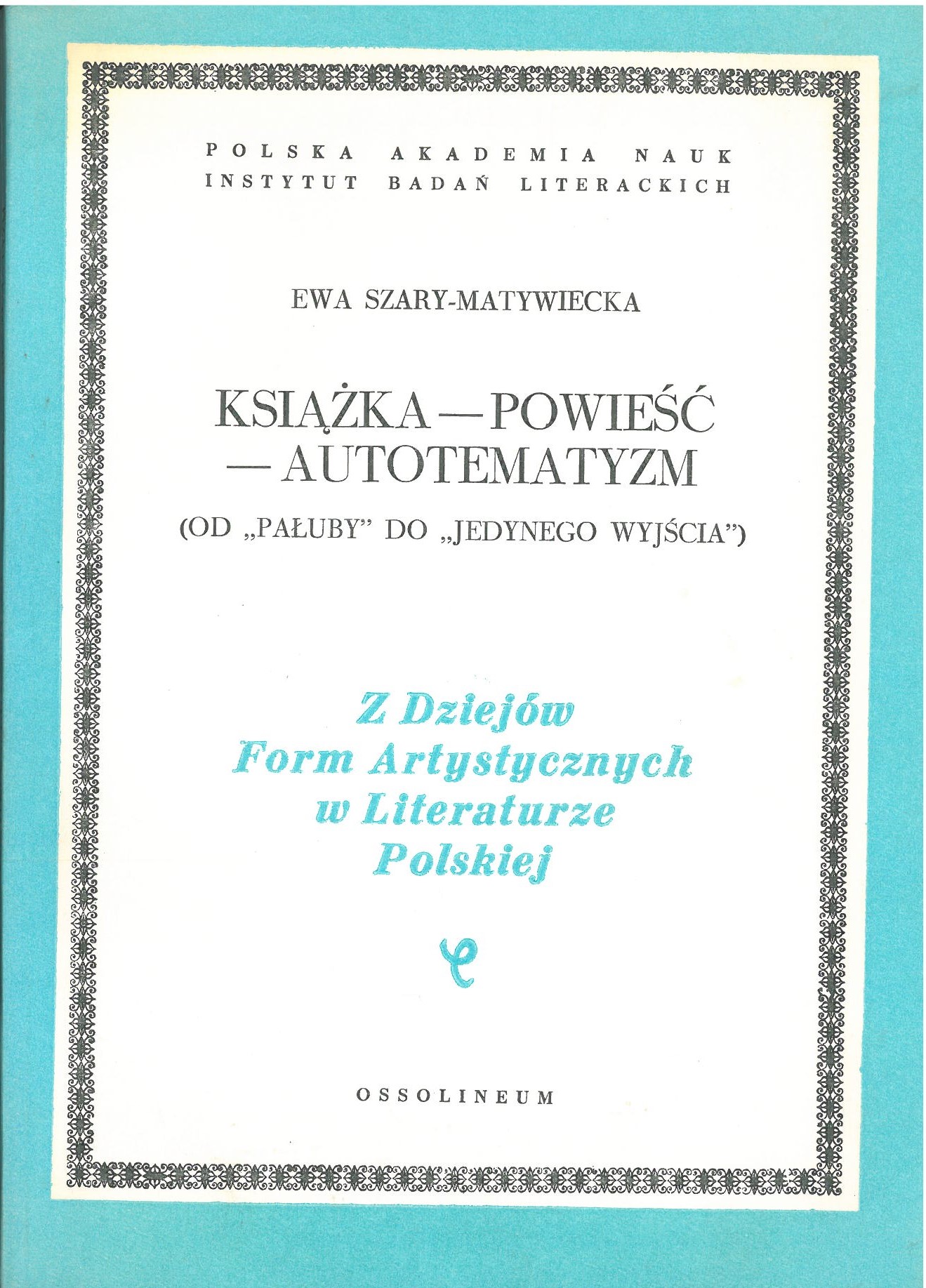 (Z Dziejów Form Artystycznych w Literaturze Polskiej / Polska Akademia Nauk.Instytut Badań Literackich ; T.53)