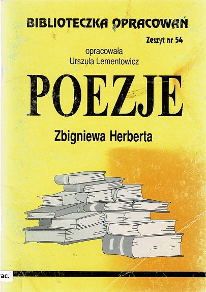 Zawiera: Zbigniew Herbert - informacje biograficzne * Inspiracje antykiem - Nike która się waha - Do Apollina - Apollo i Marsjasz * Wiersze z cyklu Pan Cogito - Pan Cogito obserwuje w lustrze swoją twarz - Pan Cogito - powrót - Przesłanie Pana Cogito * Proza poetycka - Wilk i owieczka - Próba rozwiązania mitologii - Co myśli Pan Cogito o piekle * Różne motywy i poetyki - Kołatka - Tren Fortynbrasa - Przesłuchanie anioła - Raport z oblężonego Miasta - 17 IX * Znaczenie poezji Zbigniewa Herberta * Przypisy * Bibliografia