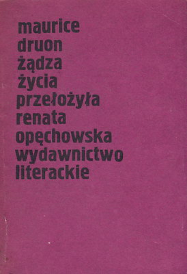 W "Żądzy życia", powieści psychologiczno-obyczajowej, akcja rozgrywa się w środowisku rzymskiej bohemy. Na tym tle Druon przedstawił pasjonujące, a zarazem tragiczne dzieje kurtyzany, która apogeum swojej świetności przeżyła w okresie I wojny światowej. U schyłku życia ta ongiś oszałamiająco piękna kobieta, obdarzona nadto dużą inteligencją, teraz chora i opuszczona, odtwarza w swoich wspomnieniach i halucynacjach największe triumfy i najmocniejsze uczucia swojej młodości. /www.antykwariat.waw.pl/