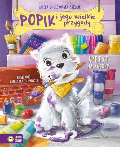 Znacie Popika? To piękny BIAŁY terierek, bardzo zadowolony ze swojego życia. Jednak gdy pewnego dnia Misia zaczyna zachwycać się KOLOROWYMI ptakami, biel nagle przestaje się podobać Popikowi… Czuje się taki… bezbarwny. Psiak postanawia zdobyć więcej kolorów. Tylko jak? Sięgnijcie po drugi tom przygód Popika, psiego towarzysza Misi. Tym razem poza pogonią za kolorami przed Popikiem także inne przygody: poszukiwanie piłki zagubionej wśród jabłek, wizyta u prawdziwego psa wystawowego, a nawet wyprawa na jarmark! Co jeszcze może przydarzyć się w niezwykłym psim życiu Popika? [www.azymut.pl, 2022]