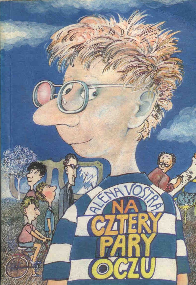 Alena Vostrá, współczesna pisarka czeska, zajmuje się głównie twórczością dramatyczną. Książki dla dzieci i młodzieży pisuje z rzadka, ale zawsze cieszą się one ogromną popularnością. Powieść "Na cztery pary oczu", która była w Czechosłowacji bestsellerem, nie zawiedzie z pewnością także polskiego czytelnika. Któż bowiem nie lubi się pośmiać?! A książka ta każdego zmusi do uśmiechu. Jest ona zapisem paru dni z życia grupki 14-letnich chłopców, którzy uczestniczą w prawdziwej komedii pomyłek. Przyczyną zabawnych komplikacji, ciągu nieporozumień są okulary głównego bohatera, a właściwie fakt, iż częściej nosi je w teczce niż na nosie. Ściąga tym samym na siebie całą masę kłopotów, zarówno w szkole, jak i w domu. Żywa akcja, humor, na który składają się serie gagów, paradoksalnych i groteskowych sytuacji oraz żart słowny, a przy tym klimat ciepła i serdeczności, towarzyszący bohaterom Vostry - wszystko to sprawia, że powieść "Na cztery pary oczu" to porcja prawdziwie relaksowej, radosnej lektury. [Nasza Księgarnia, 1987]