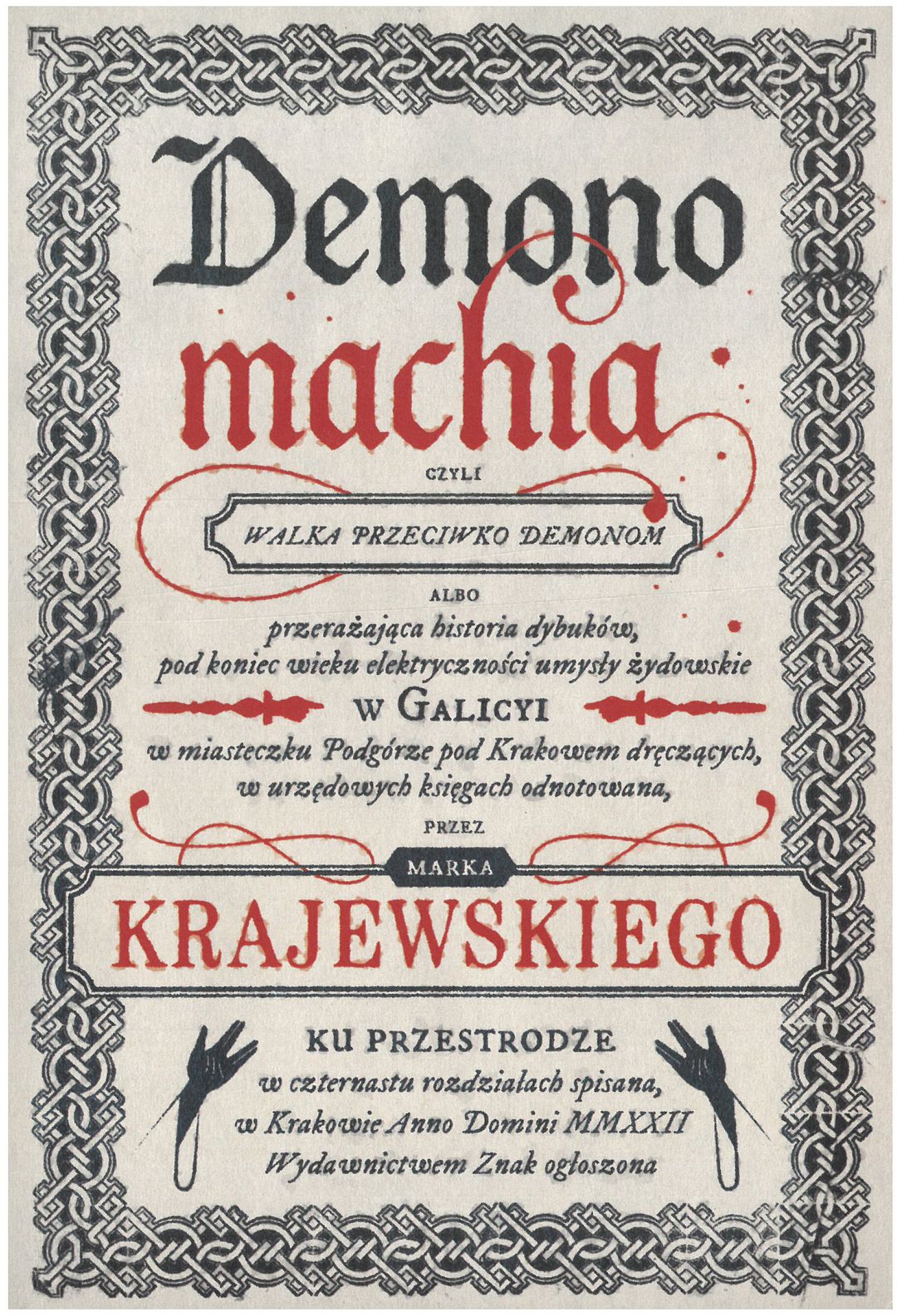 Wciągająca powieść o demonach i Galicji przełomu XIX i XX wieku. Gimnazjalista Stefan Zborski nie może pogodzić się z nagłą śmiercią ojca. Pragnie znaleźć odpowiedzi na dręczące go pytania, których nie zdążył zadać mu za życia. Choć nie wierzy w istnienie świata duchów, to jednak — pod wpływem irracjonalnego impulsu — organizuje seans spirytystyczny. Nieśmiadom mocy, w jaką podczas seansu wyposażyły go demony, Stefan rzuca klątwę na żydowskiego chłopca. Szlomek w najmniej spodziewanych momentach wije się jak wąż i wydaje z siebie wwiercające się w umysł kocie wrzaski. Oto początek śledztwa w sprawie demonicznej. Rozmodleni Żydzi z Podgórza i orgie artystów młodopolskiego Krakowa, siła rozumu i moc wiary, niewinna miłość i bezduszne wyuzdanie. Na granicy dwóch światów niedoszły egzorcysta Zborski szuka odpowiedzi na pytanie: "Czy dybuki istnieją?".