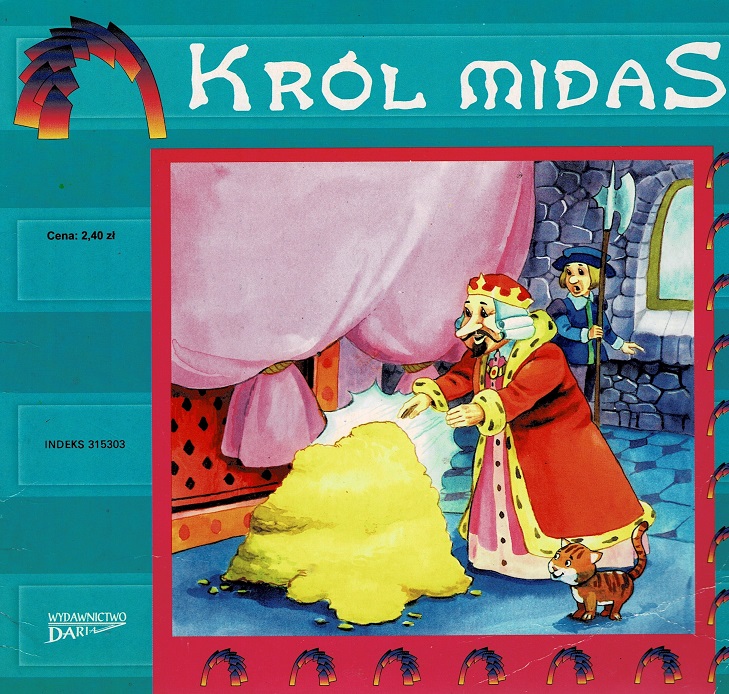 Król Midas / [opracowanie tekstu i ilustracje Marek Szal]. - Kraków : Daria, copyright 1997 - [12] s. : il. kolor. ; 20 x 22 cm.