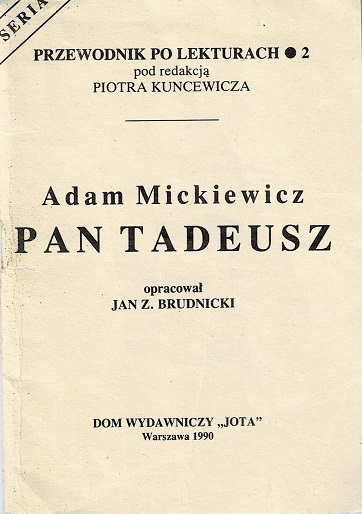 Adam Mickiewicz "Pan Tadeusz" / oprac. Jan Z. Brudnicki. - Warszawa : "Jota", 1990 (Kiel. : Pras.ZG). - 52, [4] s. ; 14 cm.