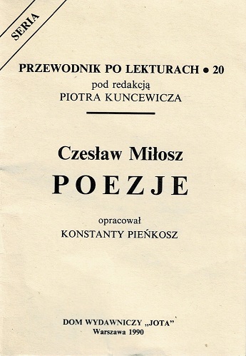 Czesław Miłosz "Poezje" / Konstanty Pieńkosz. - Warszawa : Jota, 1990. - 45 s. ; 14 cm.