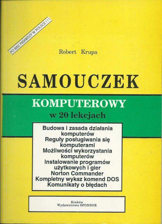 Budowa i zasada działania komputerów; Podstawy obsługi DOS; Organizacja dysku; Konfigurowanie pamięci; Norton Commander; Podstawy obsługi Windows; Możliwości wykorzystania Windows